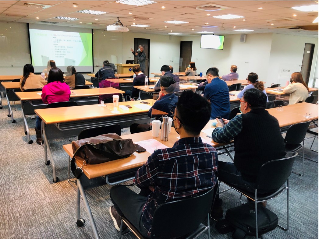 王經理授課剪影。台中分行於3月9日與國貿局、中華民國進出口商業同業公會全國聯合會單位、貿協台中辦事處等單位合辦「2022全球經貿趨勢與企業因應之道」研討會。