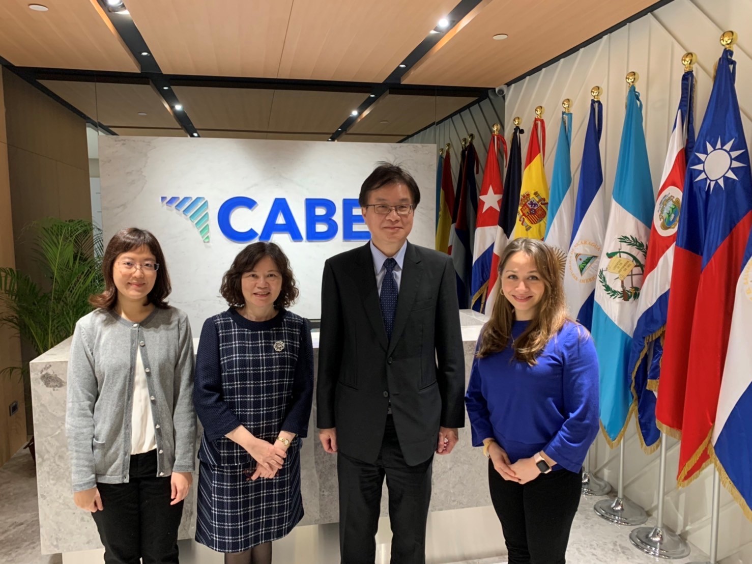輸出入銀行戴總經理燈山(左5)、台北市進出口商業同業公會黃秘書長文榮(左4)、台灣非洲經貿協會黃理事長華民(右3)、台灣非洲工業發展協會洪理事長慶忠(左3)、中華民國國際經濟合作協會孫副理事長杰夫(右2)、台灣非洲經貿協會洪副理事長玉芬(左2)、資誠聯合會計師事務所劉會計師欣萍(右1)、輸出入銀行業務部鄭經理秀如(左1)共同合影。拜訪中美洲銀行(CABEI,Central American Bank for Economic Integration)駐我國國家辦事處